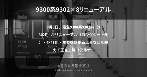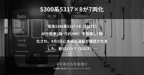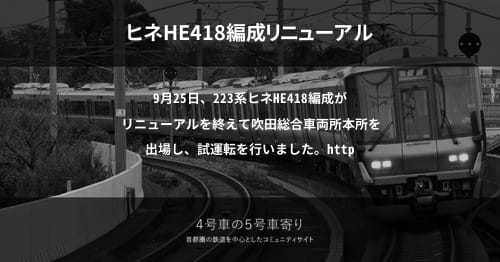 「4号車の5号車寄り」へようこそ。コミュニティへ寄せられた情報を元に、鉄道車両・施設動向をまとめています。ぜひ投稿をご検討くださいませ。